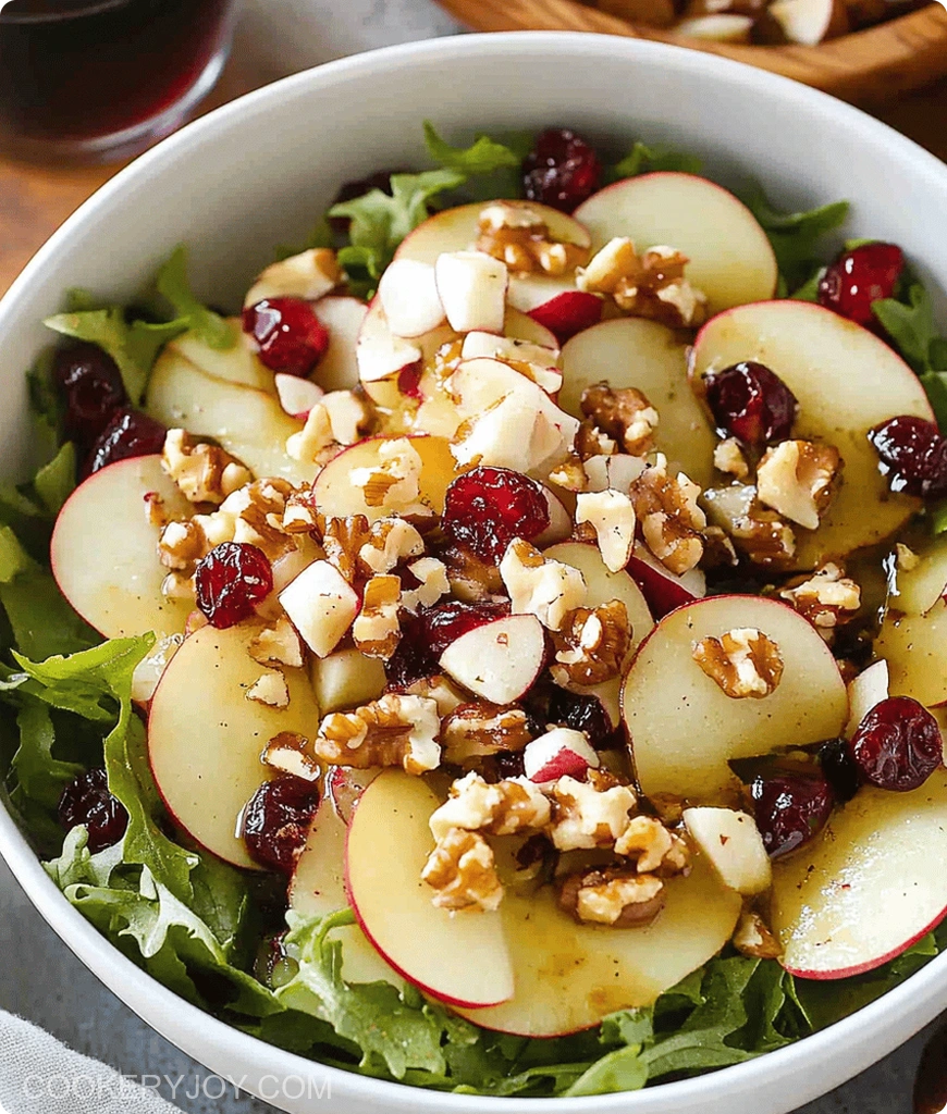 A refreshing and flavorful Apple Cranberry Walnut Salad with a homemade apple cider vinaigrette, perfect for a light lunch or side dish.