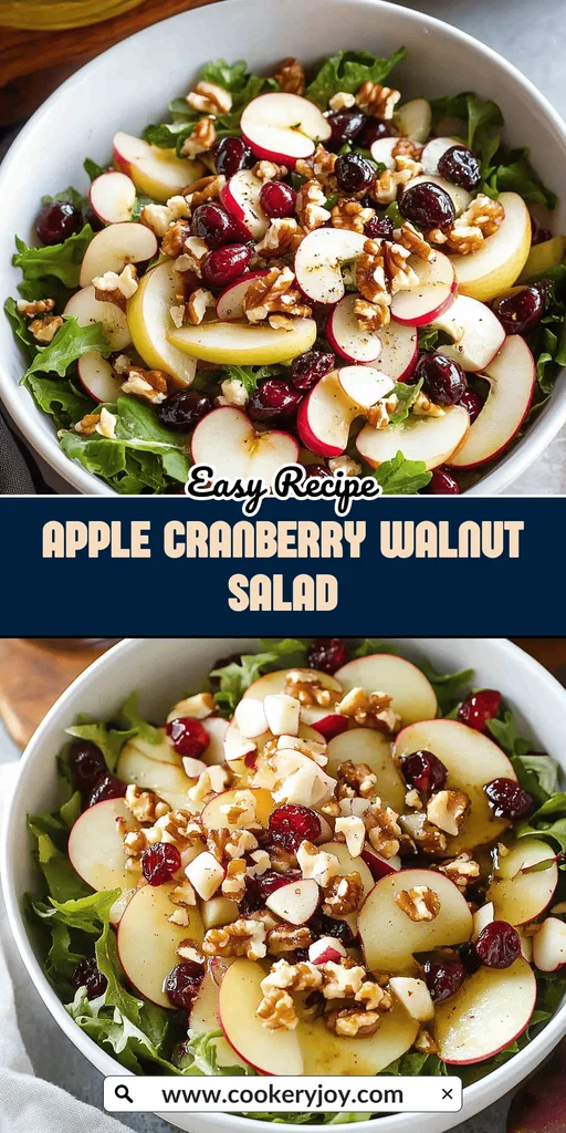 This Apple Cranberry Walnut Salad is so versatile! Serve it as a light lunch. Add some crusty bread for dipping. It pairs wonderfully with roasted chicken. Pork dishes are also a great match. It’s a perfect side dish for holiday meals. Enjoy it with crisp white wine. Sparkling cider is also a lovely choice. Garnish with extra cranberries and walnuts. This adds visual appeal and extra crunch.