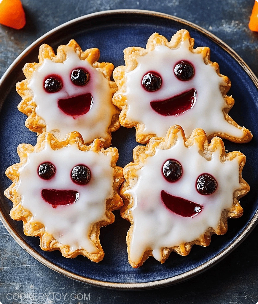 - Prepare Icing (Optional): In a small bowl, whisk together confectioners’ sugar, 1 tablespoon fresh lemon juice, and 1-2 teaspoons water until smooth and spreadable. Using an offset spatula or butter knife, spread icing over the cooled ghost pies (avoiding the ‘face’ if desired).