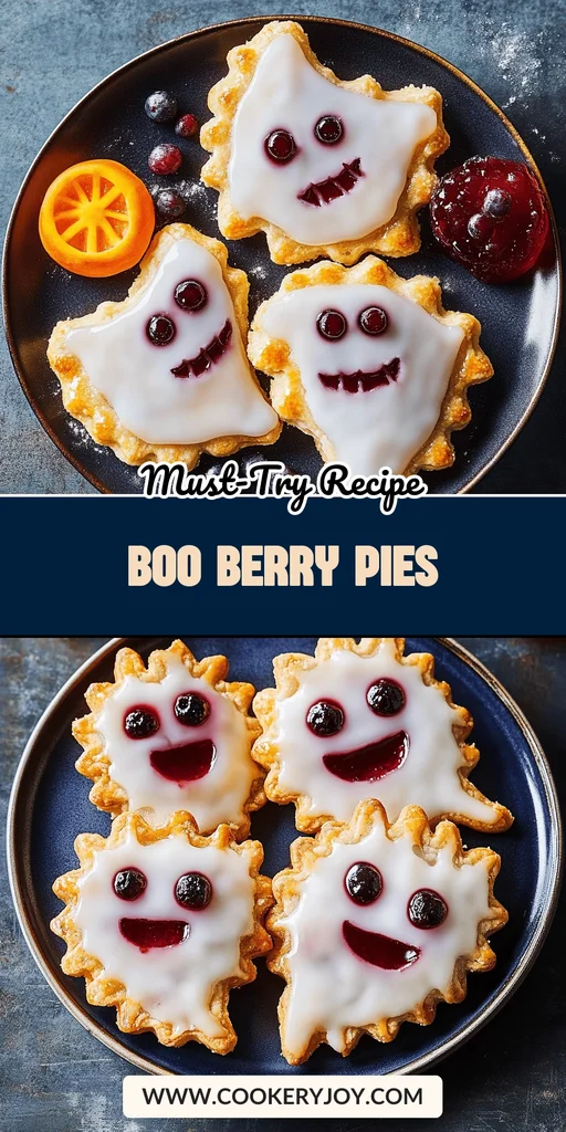 These charming Boo Berry Pies are a delightful Halloween treat, featuring a sweet blueberry filling encased in flaky pie crust cut into festive ghost shapes. They are perfect for parties or a fun family baking activity.