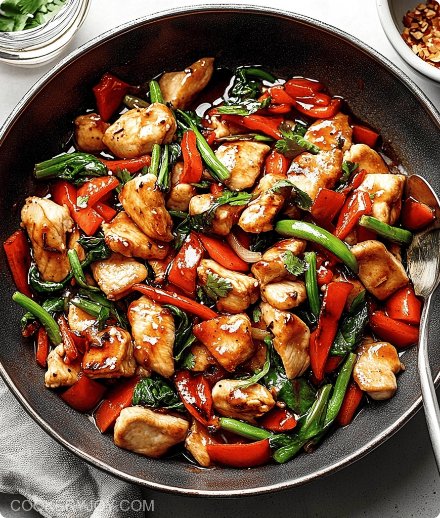 A quick and flavorful chicken stir-fry recipe with a sweet and savory sauce, packed with fresh vegetables.