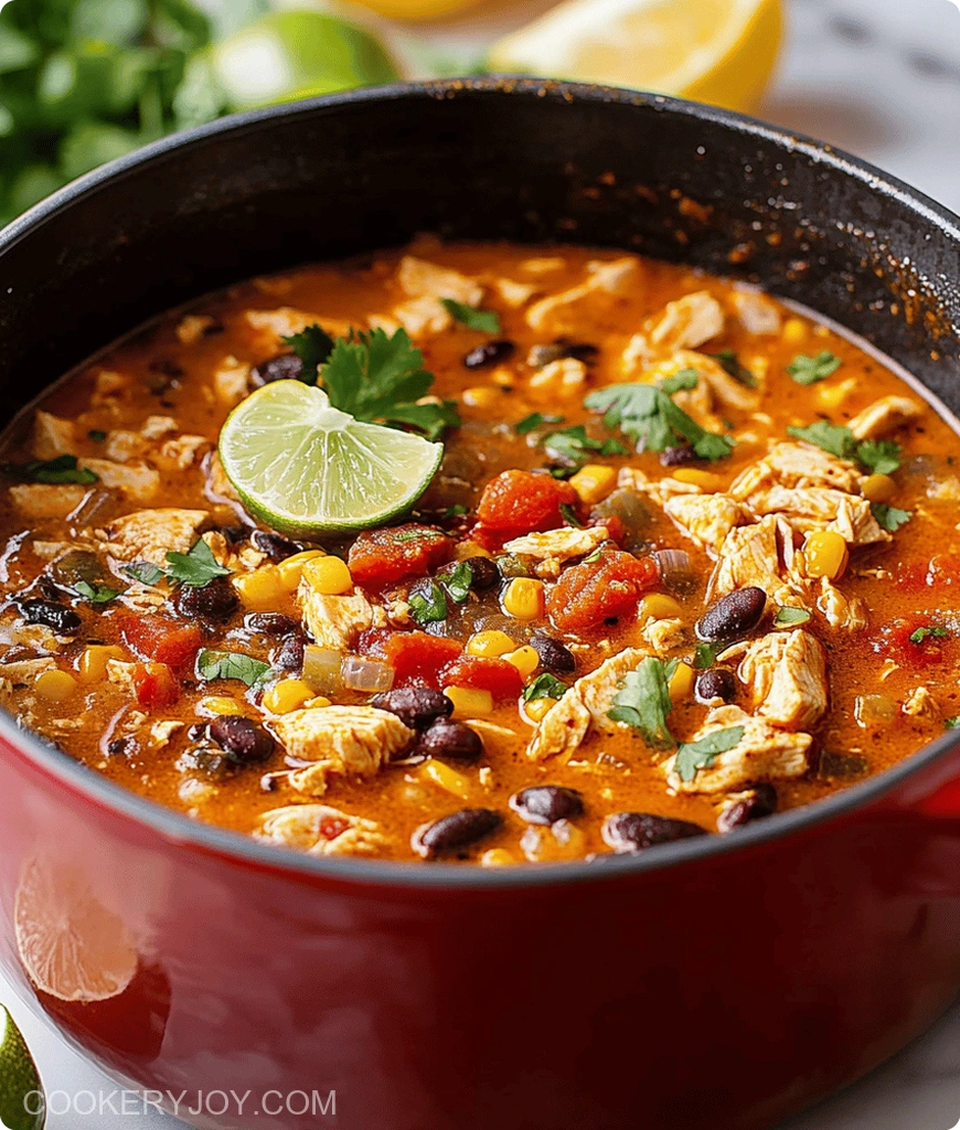 A hearty and flavorful chicken taco soup, perfect for a quick and satisfying meal.