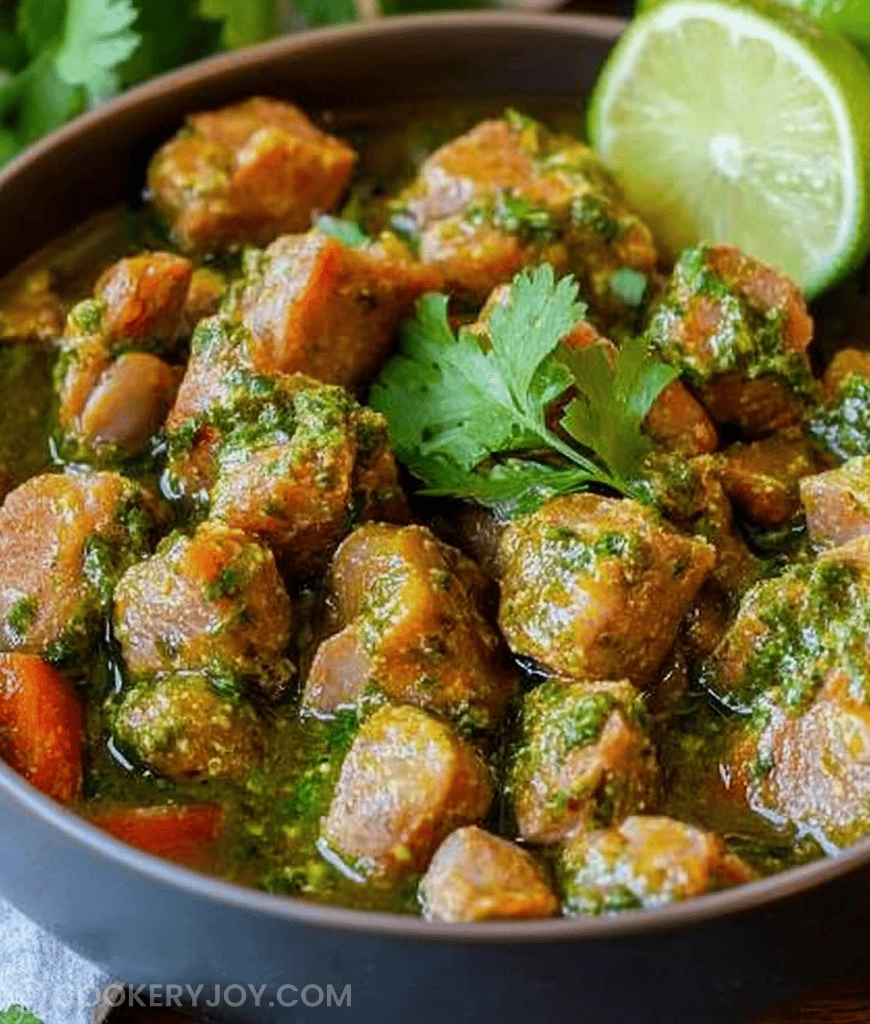 A classic Mexican stew made with tender pork simmered in a vibrant green sauce of roasted poblanos, jalapeños, tomatillos, and cilantro.