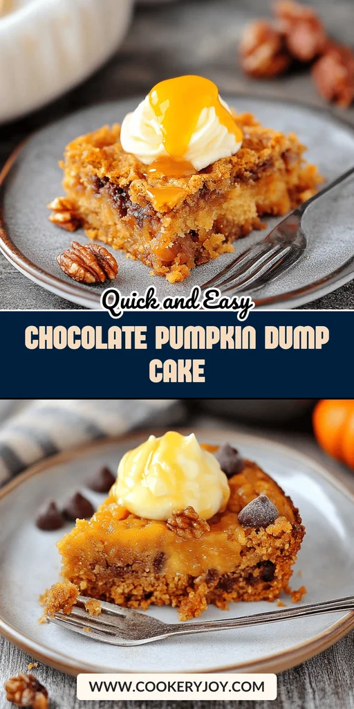 This Chocolate Pumpkin Dump Cake is a delightful embrace of autumn. It brings together comforting pumpkin and rich chocolate flavors. The texture is wonderfully moist and tender. A sweet, spiced pumpkin base is topped with a perfectly baked cake layer. It’s studded with delicious chocolate chips and crunchy pecans. This dessert makes your kitchen smell like a cozy fall day. It is a go-to for busy weeknights. You’ll need a quick, satisfying treat. It’s also impressive enough to share at gatherings. This easy dump cake recipe is incredibly forgiving. It’s a favorite for bakers of all levels. It stores beautifully, so you can enjoy a slice of fall anytime.