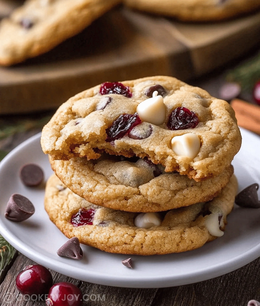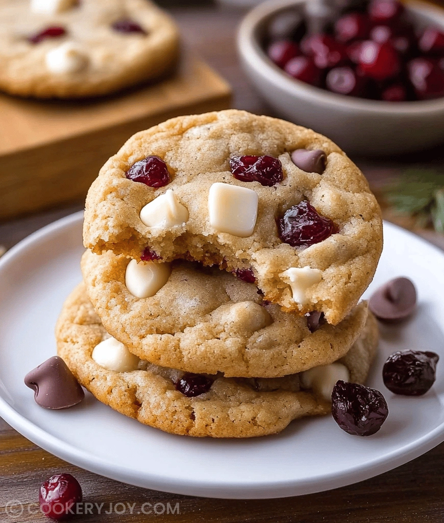 A delicious recipe for soft and chewy cookies featuring the festive combination of tart dried cranberries and sweet white chocolate chips.
