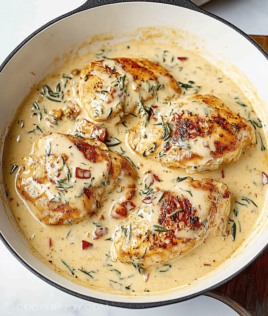 - Return the cooked chicken to the skillet, nestling it into the creamy sauce. Simmer for another 2-3 minutes to heat through and coat the chicken.