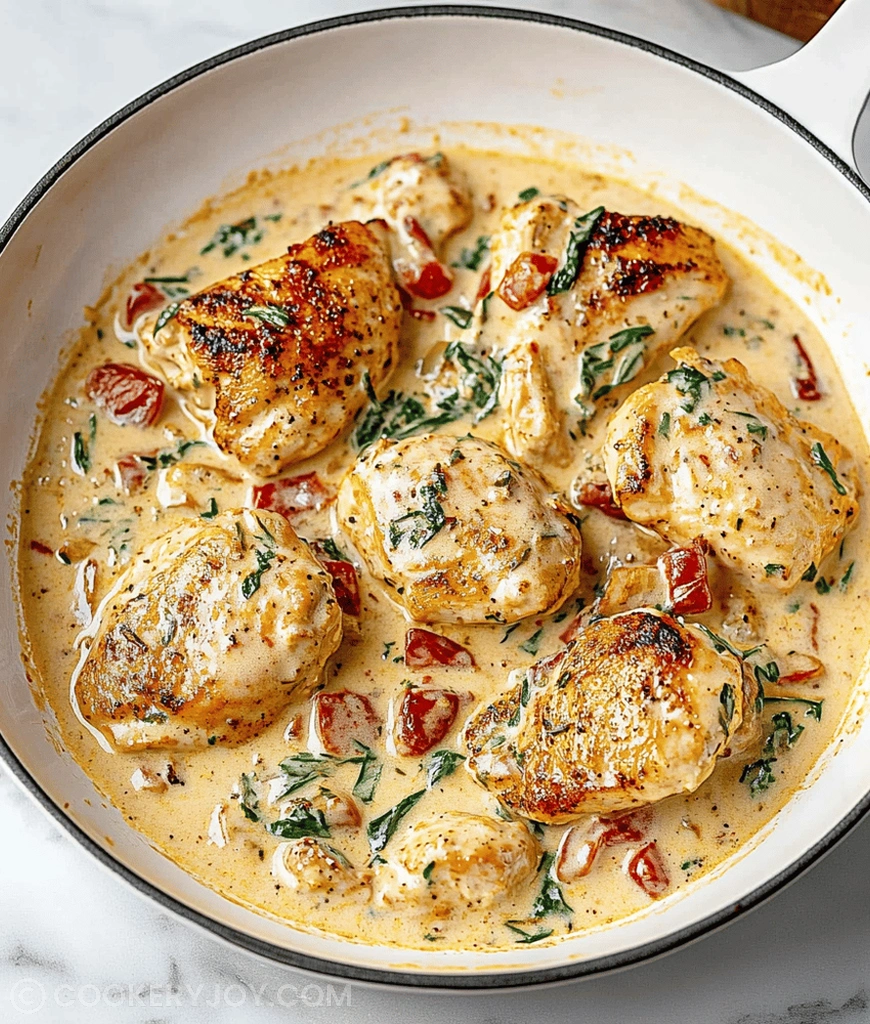 A rich and flavorful Creamy Keto Tuscan Chicken recipe that’s perfect for a low-carb meal. This dish features tender chicken simmered in a creamy sauce with sun-dried tomatoes and spinach.