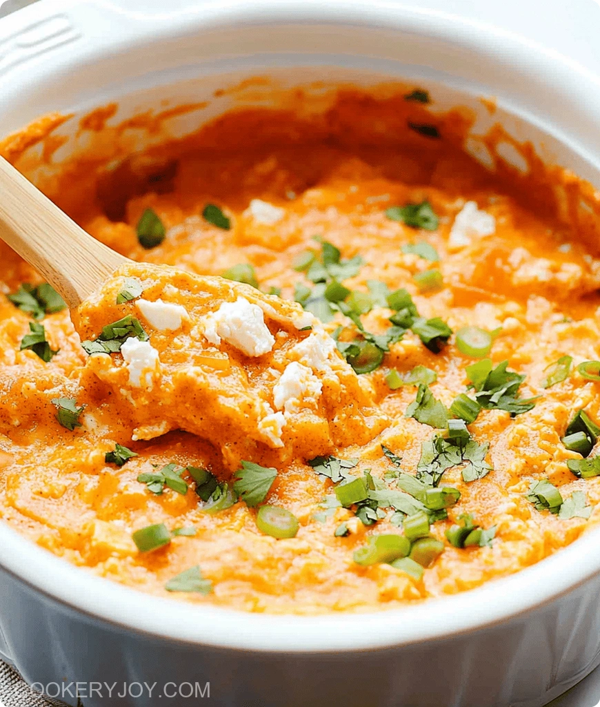 Once the dip is heated thoroughly, it will be bubbly and wonderfully creamy. Give it one last good stir. Now it’s time to serve your fantastic Crockpot Buffalo Chicken Dip! Spoon it into a serving bowl. Offer it right away with all your favorite dippers. Think crunchy tortilla chips, crisp carrot sticks, or refreshing celery. It’s guaranteed to be a hit!
