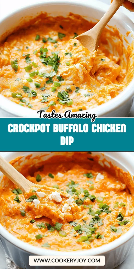 A creamy and flavorful buffalo chicken dip made in a crockpot.