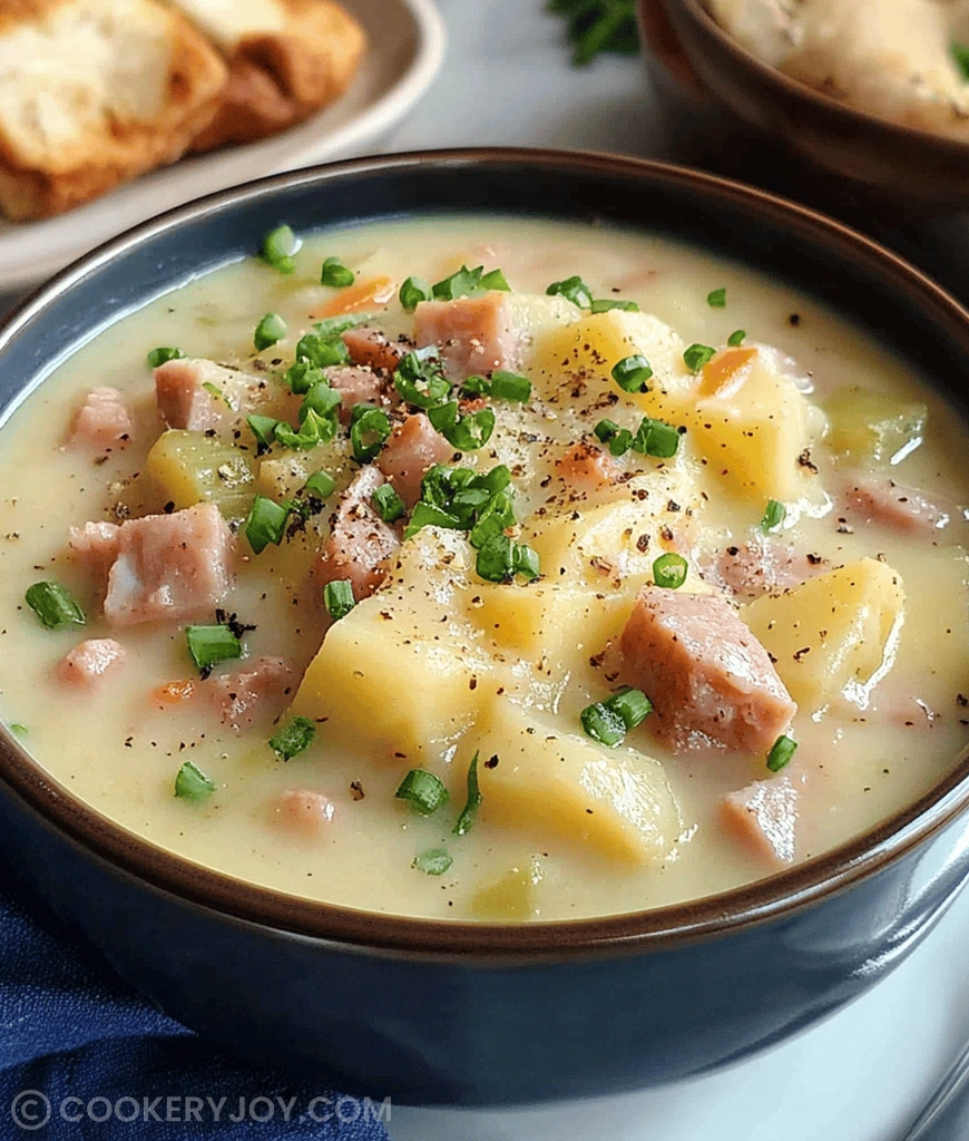 If you prefer a thicker Crockpot Ham and Potato Soup, use the cornstarch slurry method during the last 30 minutes of cooking. Whisk cornstarch with cold water until smooth. Then stir it into the soup. It thickens beautifully without altering the taste.