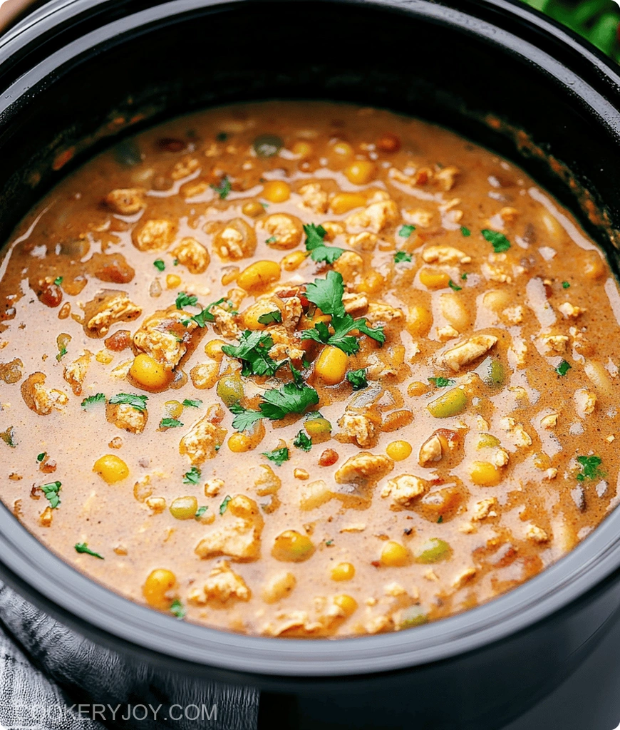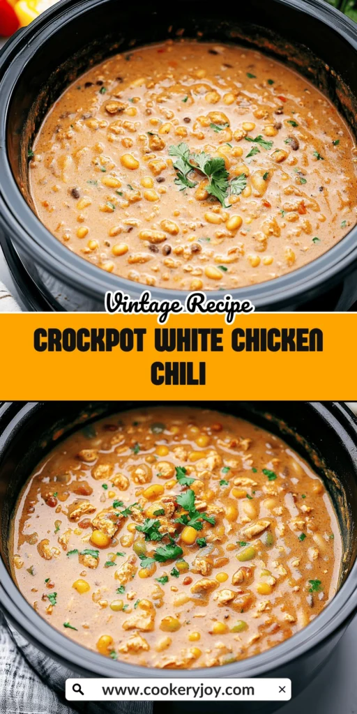 A hearty and creamy white chicken chili made in a slow cooker, perfect for a comforting meal.