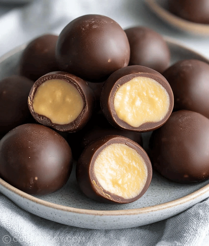 Your beautiful Chocolate Dipped Peanut Butter treats need a final rest. Put them back into the refrigerator. Let them sit until the chocolate coating sets up hard. That firm shell locks in the creamy center beautifully. Store your finished candies soon after they set.