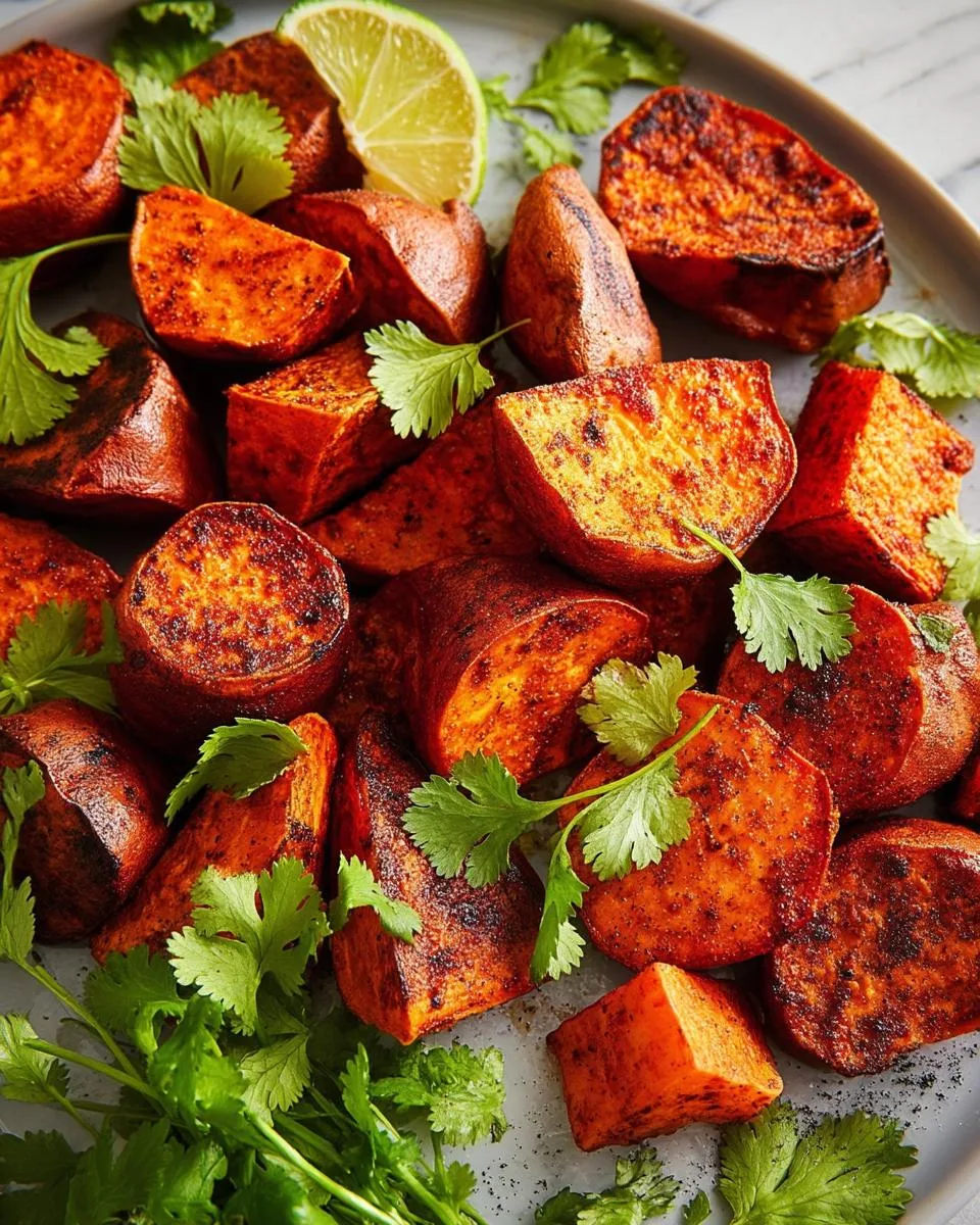 A simple and flavorful recipe for roasted sweet potatoes, seasoned with spices for crispy edges and caramelization.