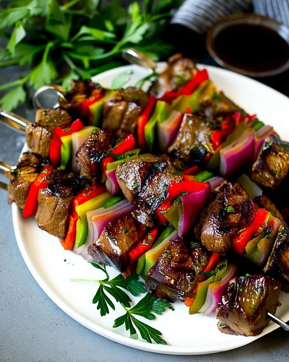 I absolutely love how grilled beef shish kabobs bring together tender, marinated meat with vibrant vegetables for that smoky, savory bite. It’s perfect for summer evenings on the patio. The red wine and teriyaki marinade infuses the beef with deep flavor while keeping it juicy. Plus, the colorful bell peppers add a slight crunch that balances the richness perfectly.