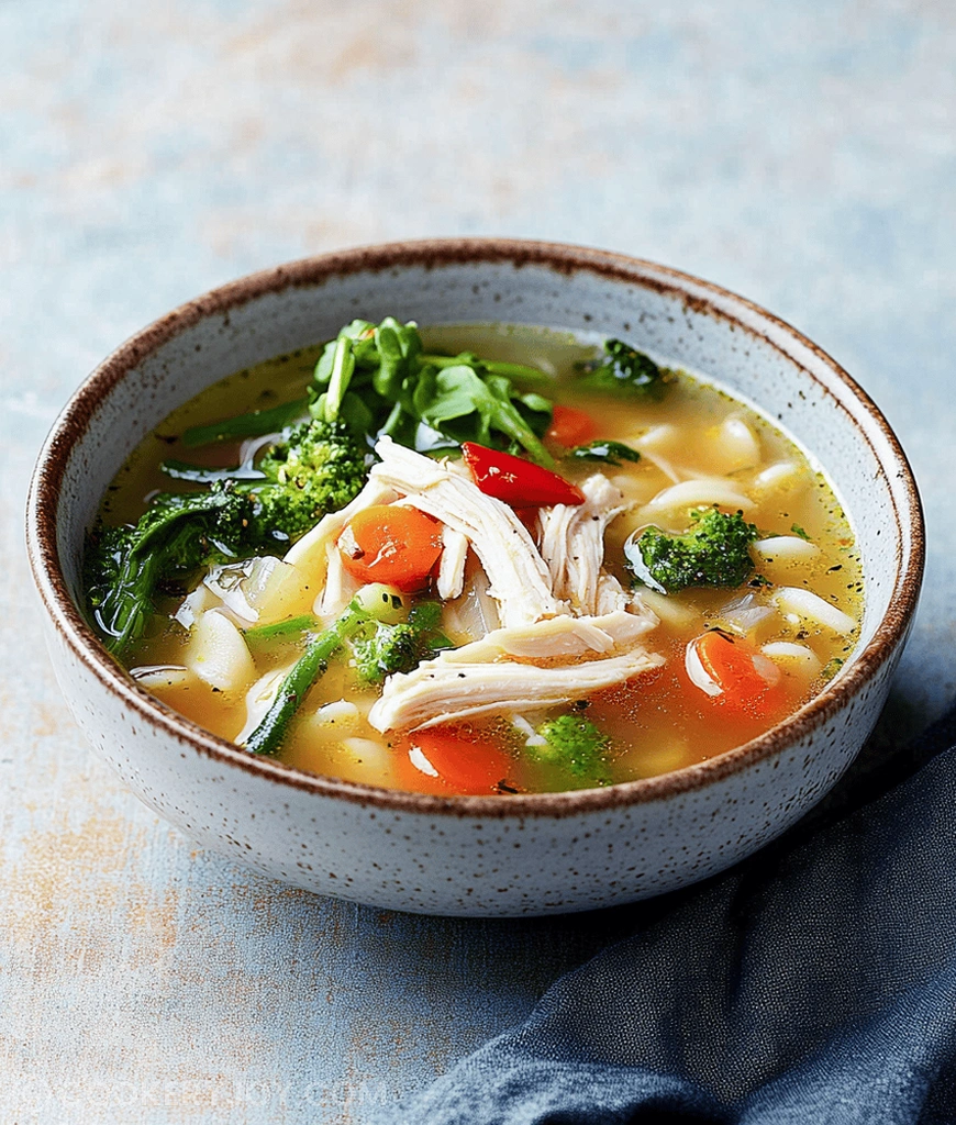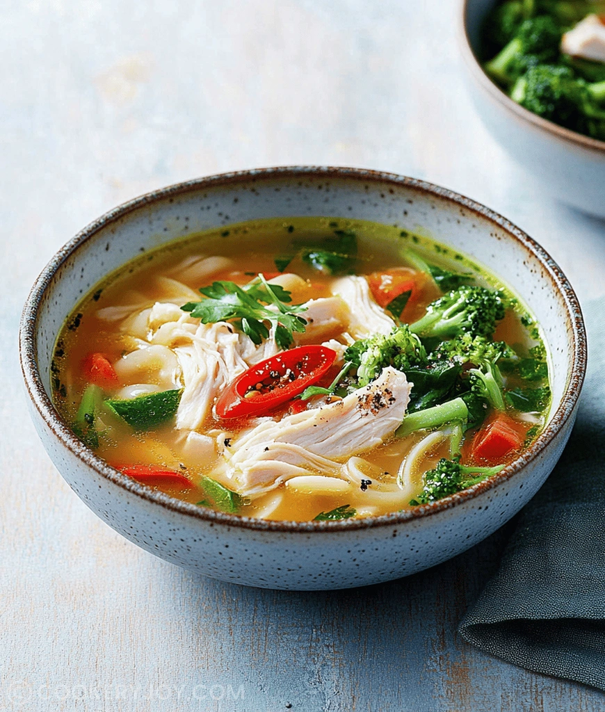 A comforting and healthy chicken noodle soup made with lean chicken, fresh vegetables, and whole wheat noodles.