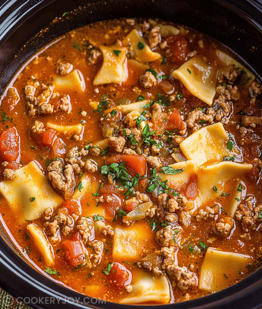 A hearty and flavorful lasagna soup made easily in a crockpot, perfect for a comforting meal.