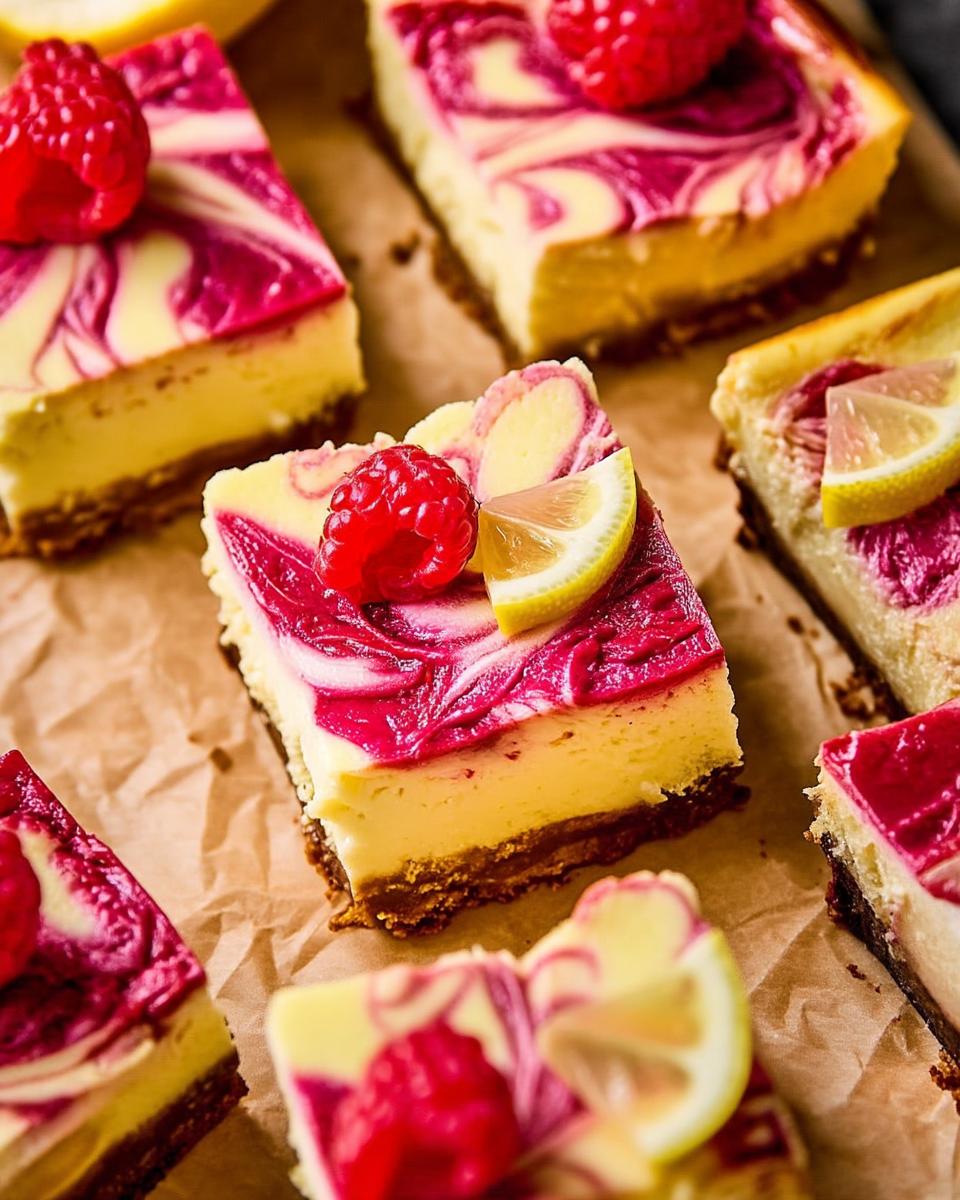 After chilling, run a wet knife under hot water. Wipe clean between cuts to slice the bars neatly into 16 equal pieces without crumbling. Drizzle each bar with the reserved raspberry puree for extra tang. Top with a dollop of whipped cream or a fresh lemon wedge if you want to enhance the presentation. These steps ensure clean edges and maximum enjoyment straight from the fridge. My kids love this part—it’s like a little dessert party.