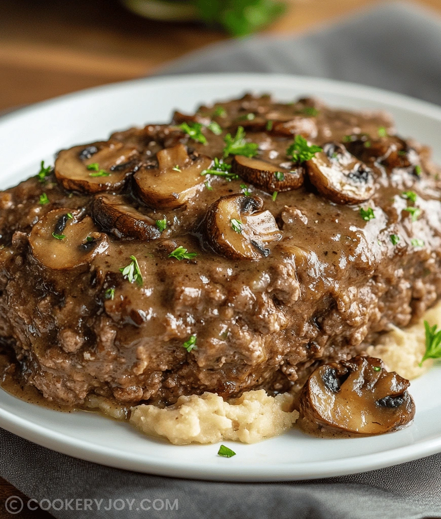 A savory and flavorful meatloaf packed with earthy mushrooms, perfect for a comforting family meal.