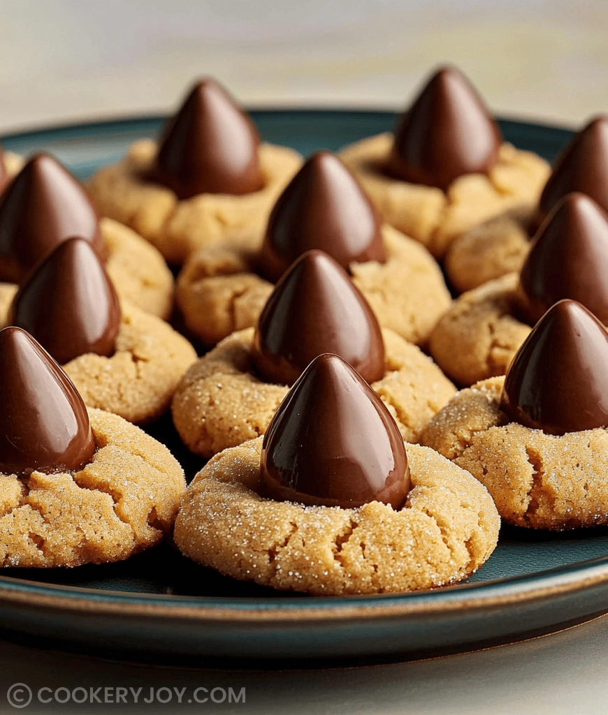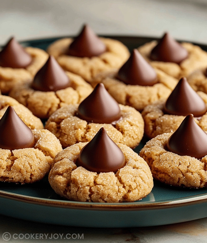 A classic holiday cookie featuring a soft, chewy peanut butter base topped with a chocolate kiss center.