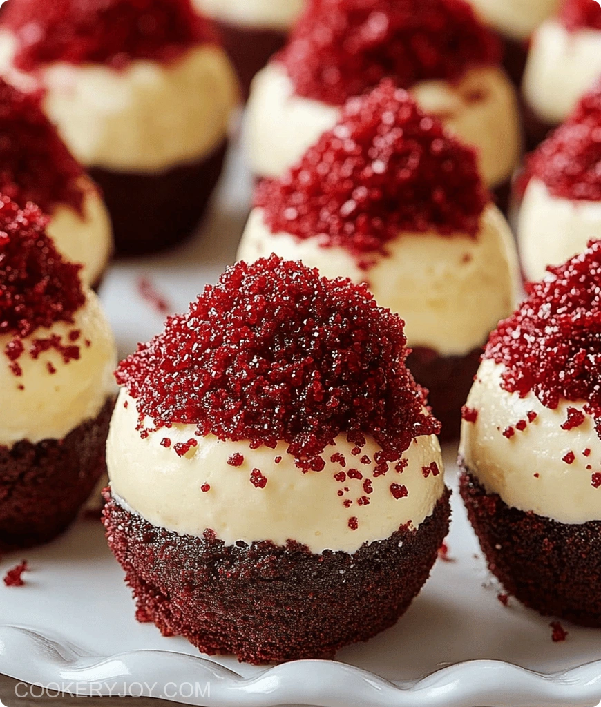 Delightful bites featuring a creamy cheesecake center coated in rich red velvet cake crumbs.