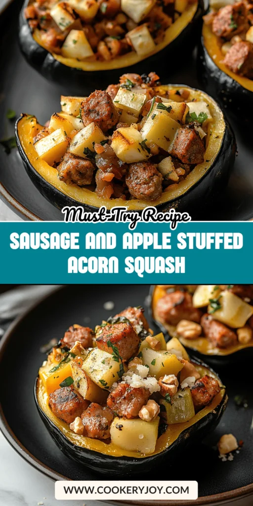 A delightful and hearty dish featuring savory sausage and sweet apples baked inside tender acorn squash, perfect for a fall meal.